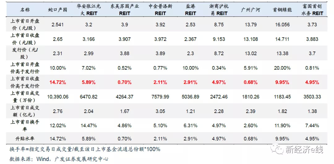 在接下来上市第二周的前3个交易日里,广州广河持续维持破发状态,其余REITs均维持溢价状态。其中,蛇口产园、首钢绿能和首创水务的升水程度维持在较高水平,但东吴苏园、中金普洛斯和盐港收盘价接近于发行价,有破发趋势。