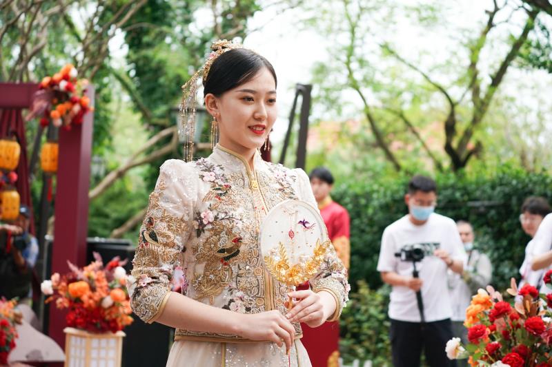 “爱的美好”新中式婚礼产业展演中,曲调或慷慨激昂,或清新婉约,富有艺术感染力的二胡、竹笛演出,既庄重又喜庆,以全新的视角优雅回归传统文化。礼服走秀中,模特的妆容造型从头饰设计与妆容打造入手,保留文化韵味的同时又富有时尚感,华丽的中式礼服中的中国传统文化元素能引发广泛关注和更多思考。