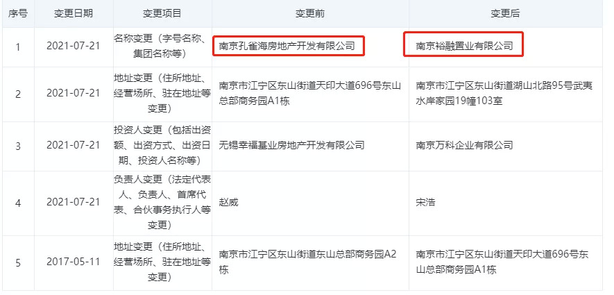 今年7月,公司信息发生变更,由南京孔雀海房地产开发有限公司变更为南京裕融置业有限公司,万科正式接手!最快10月将重新开放售楼处,年内开盘。