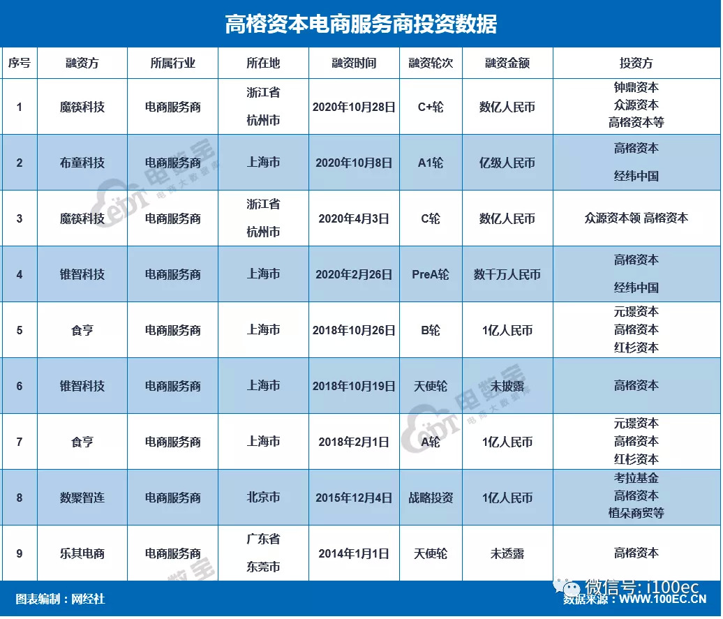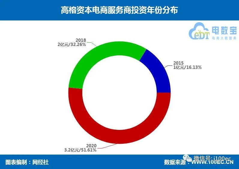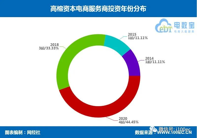 据网经社“电数宝”(DATA.100EC.CN)大数据库显示,2014年1月1日至2020年12月28日,高榕资本累计参与投资了8起电商服务商的投资,涉及公司分别为魔筷科技、布童科技、食亨、锥智科技、数聚智连 、乐其电商。