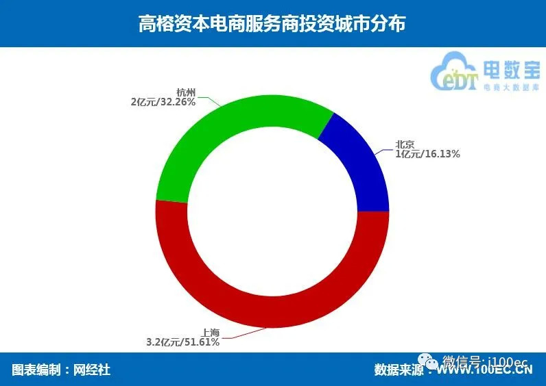 城市分布上,高榕资本投资上海最多,为3.2亿元,占比达到51.61%;其次是杭州,投资了2亿元,占比为32.26%;北京也投资了1亿元,占比为16.13%。