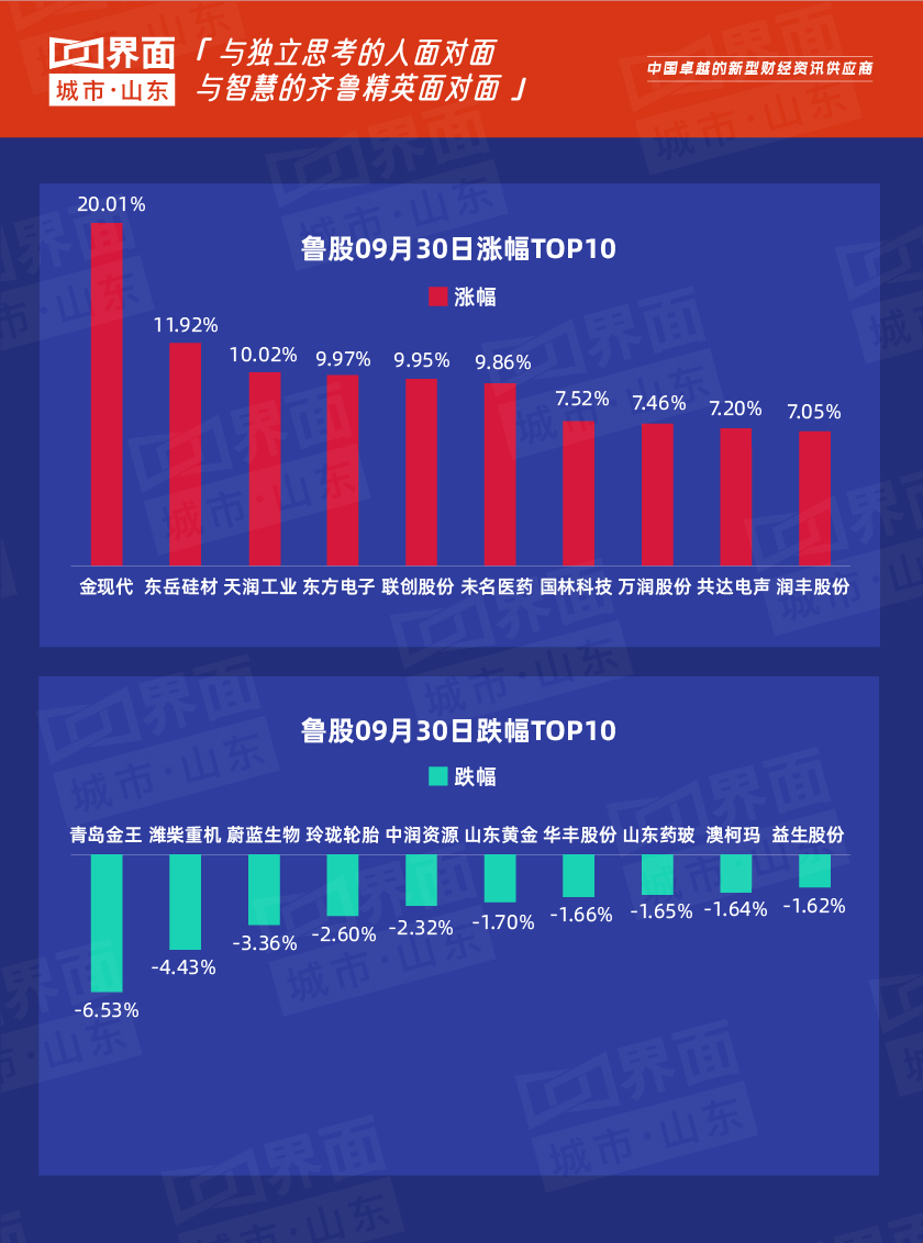 9月30日,山东213股上涨,4股持平,36股下跌。