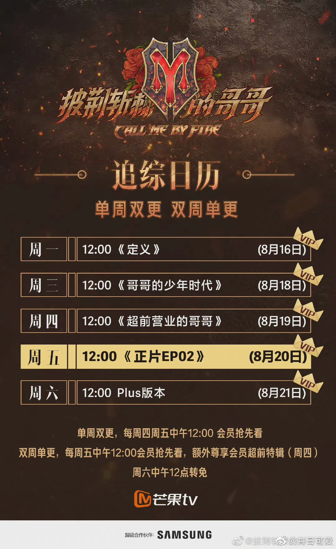 芒果系综艺在这方面可以说是走在前面,从《浪姐》到如今的《披哥》,节目不仅令观众养成了“周四周五中午看哥哥(姐姐)”的强绑定收看习惯,亦透过一周里多天更新的衍生节目持续喂养内容给受众,周一的《定义》、周三的《哥哥少年时代》、周四的《超前营业的哥哥》等衍生节目展现了哥哥们的更多面向,给哥哥的粉丝们“福利”管够。