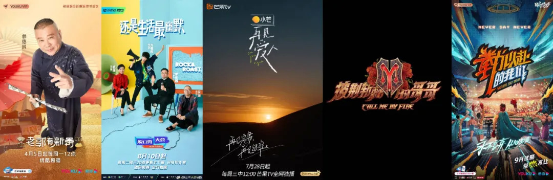周一上线的有《老郭有新番》,周二有《脱口秀大会4》《大有可为的我》《拜托了冰箱·轰趴季》,周三有《再见爱人》《奇异剧本鲨》《心动的信号4》,周四有《黑怕女孩》《这!就是灌篮4》《德云斗笑社》,周五有《披荆斩棘的哥哥》《拳力以赴的我们》《爆裂舞台》《中餐厅5》等。