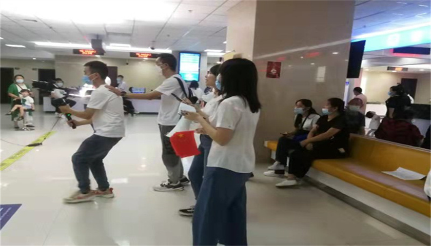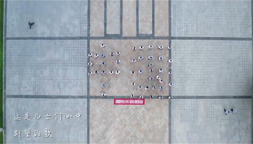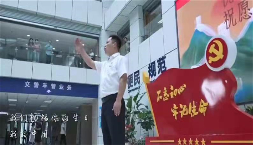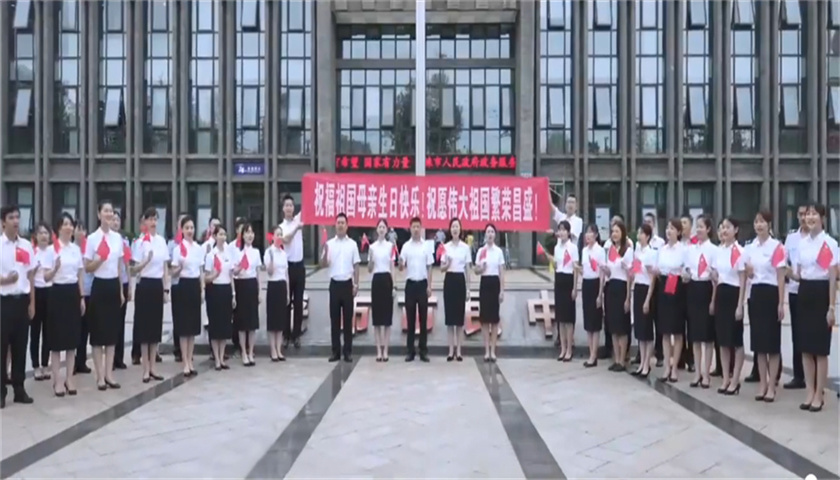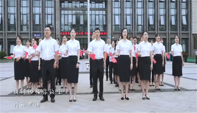 “我们祝福你的生日,我的中国。愿你永远没有忧患……”在市民中心广场,鲜艳的五星红旗迎风飘扬。整个快闪MV以大合唱收尾,大厅内数十位工作人员拼成“中国”字样,在豪迈激扬的歌声、雄伟高亢的乐曲中,将整个快闪活动再一次推上高潮。