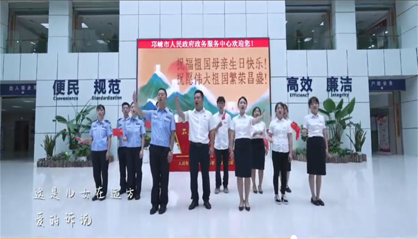 “请‘十一’号到‘72’号窗口办理业务!”据介绍,为增强快闪视频代入感,该MV中专门植入窗口排队叫号情景。“植入排队叫号这一环节,既能体现市民中心为民办事服务的日常,更能清晰地表达与凸显出‘十一’及72周年这一国庆主题。”邛崃市行政审批局相关负责人介绍说,结合党史学习教育,策划推出唱红歌快闪活动,希望借这种特殊的活动形式表达自己对祖国母亲的生日祝福,同时让广大干部群众的爱国热情得到升华。