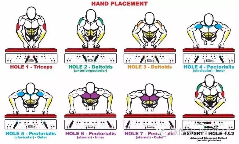 你只要买一个简单的伏地挺身训练器,照它上面的摆放位置,一样可以有相同的运动效果喔~