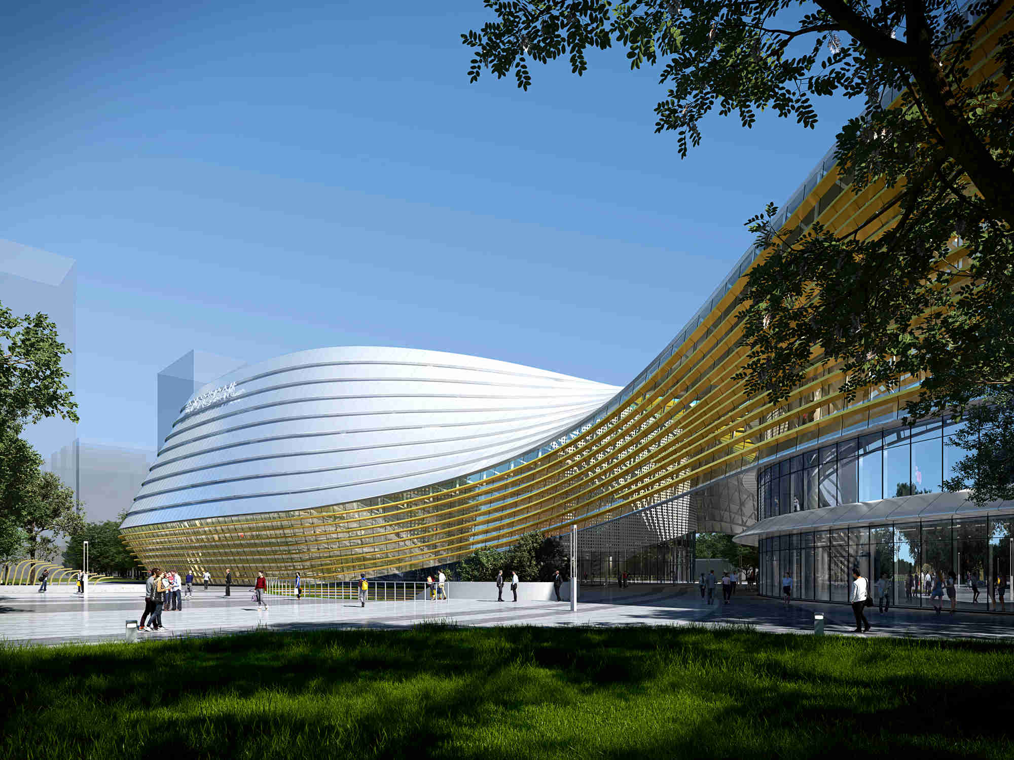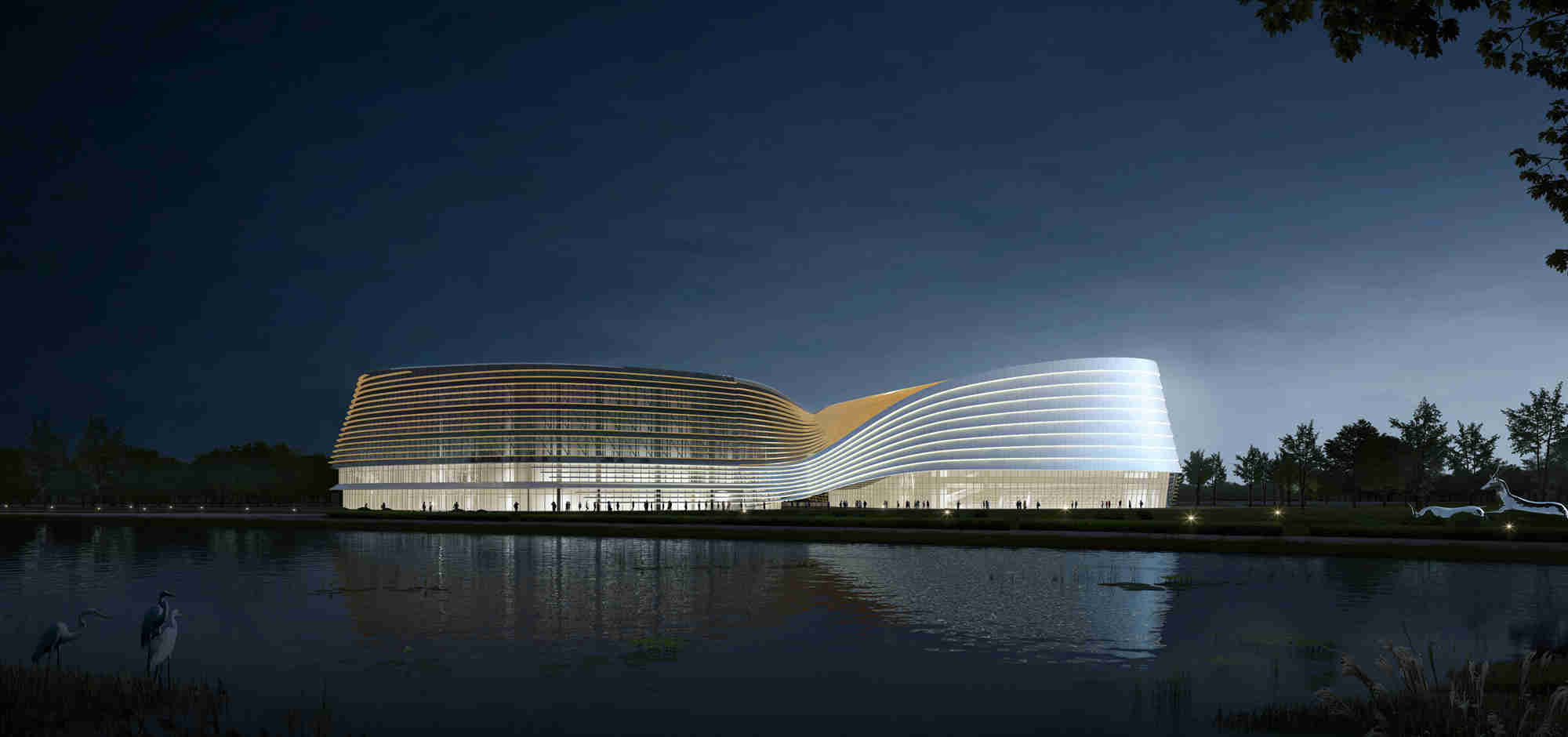 项目外观设计从金沙文化中提取建筑灵感,充分借鉴国内外先进理念,将金沙古文物浪漫形态、金沙文化元素,通过抽象表达融入外观设计,为呼应周围优美的公园景观,构建出一个生态绿色的屋顶花园,是金沙遗址片区又一地标力作。