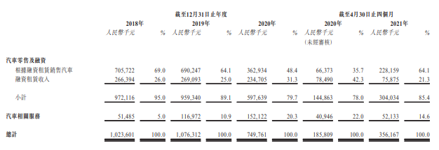 喜相逢的主营业务包括汽车零售及融资和汽车相关服务。一方面,喜相逢以直接融资租赁的方式出售汽车;另一方面,喜相逢还提供汽车经营性租赁服务以及提供其他汽车相关服务。