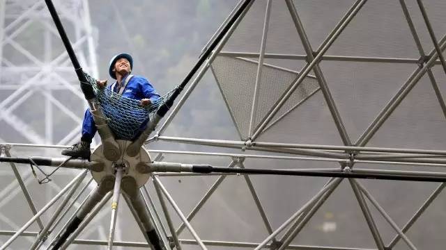 巨大的天然深坑内,中国“天眼”即将问世。看外观,太目眩了,感觉身临外太空一样。