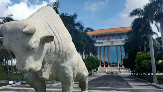 后来,由于涉嫌腐败等问题,谢明中在2007年落马,这头“牛”又被拉了回来。今天,这头“牛”仍在文昌市委市政府大院里。