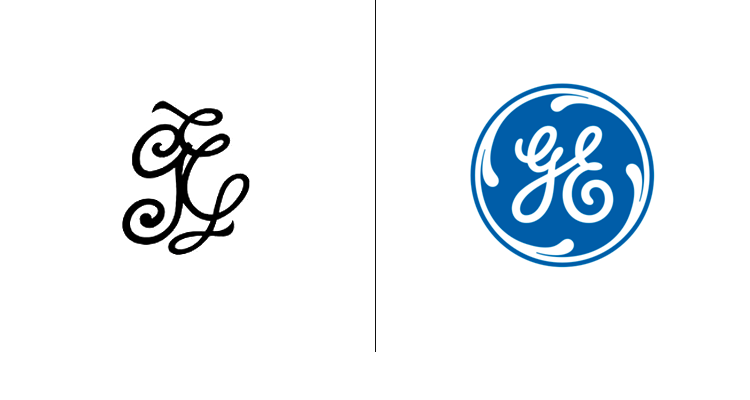 GE最初简单的花体字标志是在1892年设计的,1900年,GE又在两个字母上加了圆圈。一百多年来,GE的商标其实变化并不大,现在这个蓝色版本是2004年设计的。