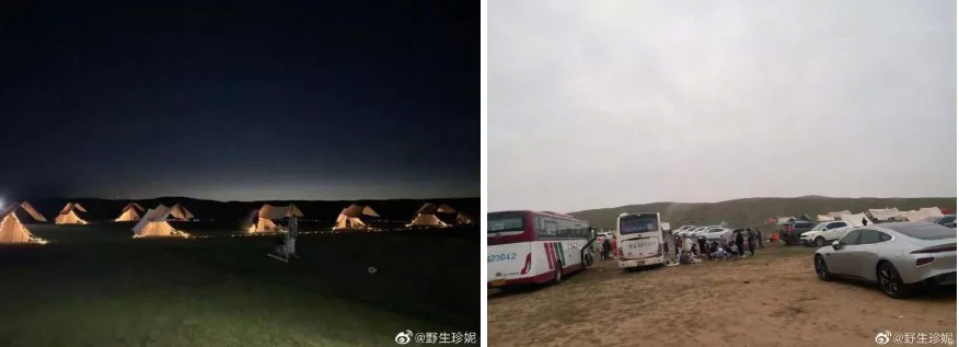 小红书种草的草原露营和真实的露营;来源 / 微博@野生珍妮