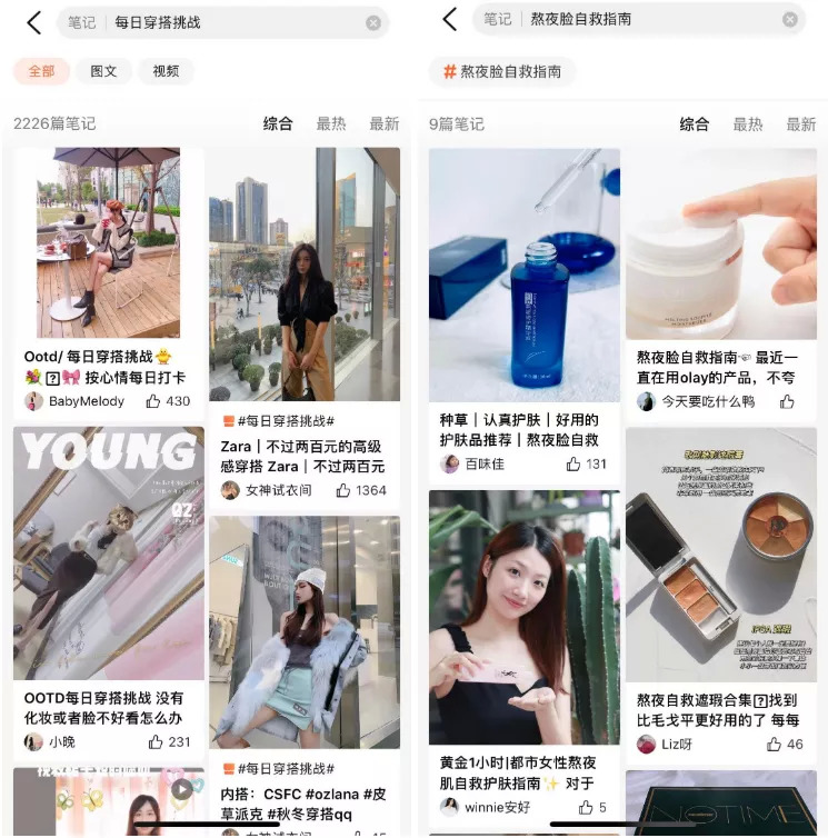 大众点评内关于穿搭和护肤的笔记;来源 / 大众点评截图