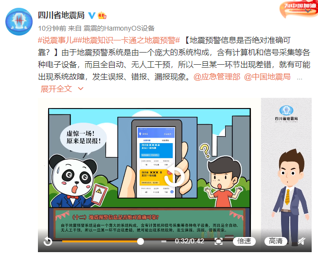 针对“地震预警信息是否绝对准确可靠”这一问题,@四川省地震局 微博进行了解答:由于地震预警系统是由一个庞大的系统构成,含有计算机和信号采集等各种电子设备,而且全自动、无人工干预,所以一旦某一环节出现差错,就有可能出现系统故障,发生误报、错报、漏报现象。