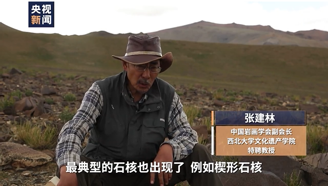 中国岩画学会副会长、西北大学文化遗产学院特聘教授 张建林:最典型的石核也出现了,例如楔形石核。年代不好判断,我们对现在藏北地区的细石器,现在还没有这个年代上的框架,我们只是分布区域上,细石器地点发现得非常多,从那曲一直到阿里。