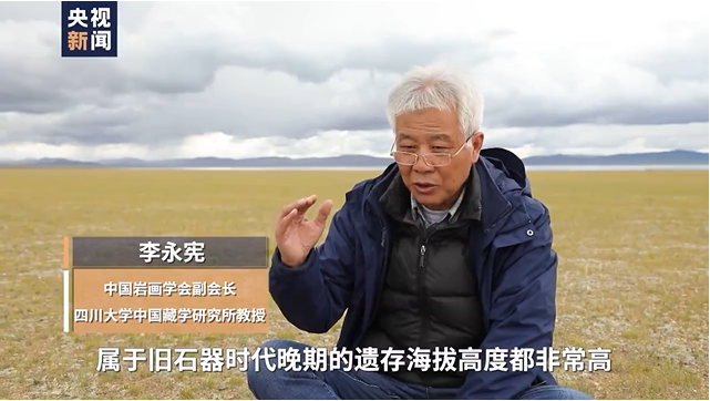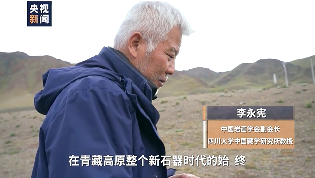 中国岩画学会副会长、四川大学中国藏学研究所教授 李永宪:迄今为止青藏高原所发现的属于旧石器时代晚期的海拔高度都非常高,几乎都在四千五百米以上。所以这个时段到了新石器时代乃至更晚的时期,在高原留下了这么多的这个岩画、这个石构遗迹、墓葬、石器地点这样的一些遗迹,跟早期人类是一个什么样的关系,这个是给我们开设开启了一扇新的窗口,让我们更多地关注到历史时期之前的高原人类的生存。