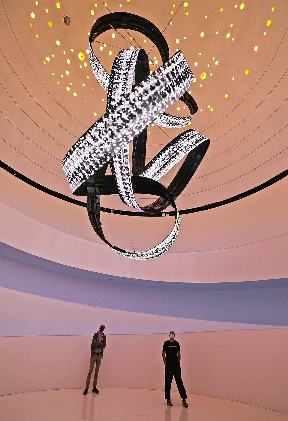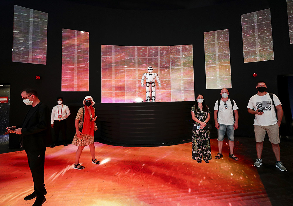 名为“华夏之光”的中国馆是本届世博会面积最大的展馆之一,主题为“构建人类命运共同体——创新与机遇”。航天科技、智慧城市、未来概念汽车、智能机器人等展项吸引了大批游客驻足。“云上中国馆”同步上线,中外观众不到现场也可以远程参观。