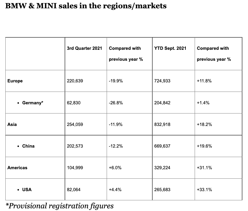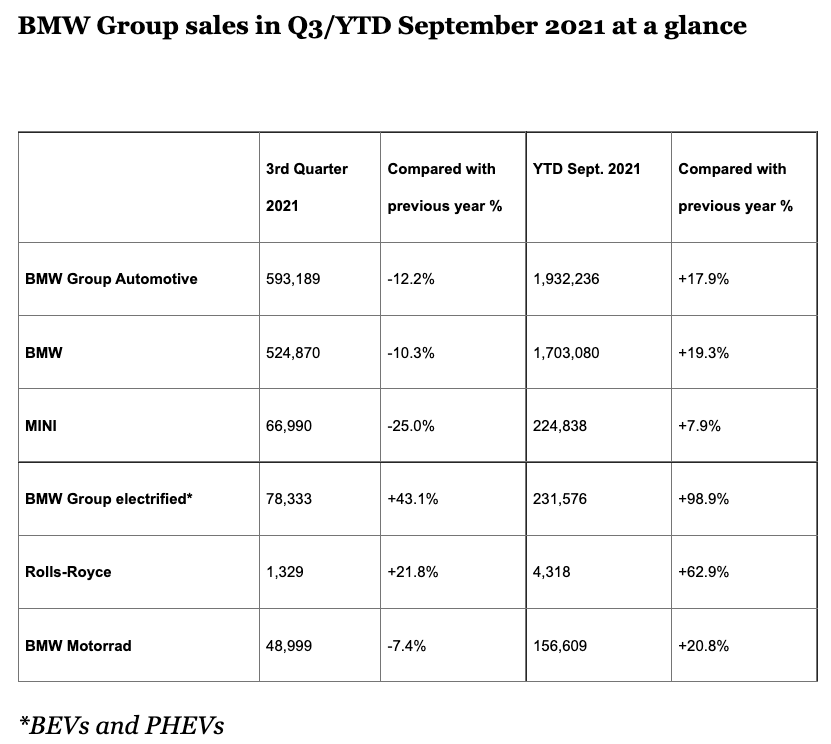中国市场方面,今年前9个月,宝马集团与经销商合作伙伴一起积极应对市场挑战,共向中国客户交付669,637辆BMW和MINI汽车,较2020年同期增长19.6%。
