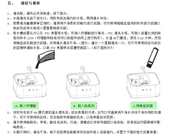 加湿器的水质确实一定程度能影响房间空气质量甚至滋生细菌,记者查阅某些加湿器产品的使用说明书发现,厂家都对灌注加湿器的水源进行了推荐,也有详细的清洁与保养说明。另有一些工业用加湿器更是对水质要求有明文规定,水中不得不含有机化合物(PHMG就是一种典型的有机化物)。
