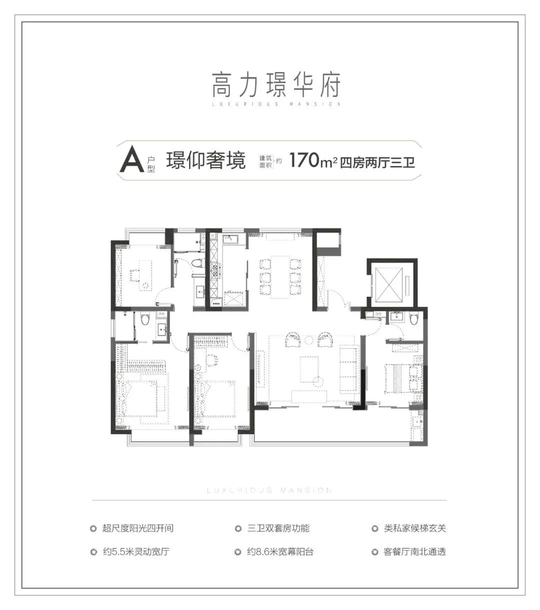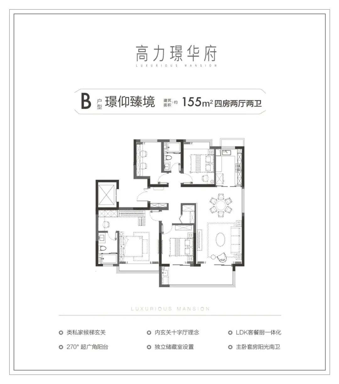 纯新盘高力璟华府已于9月25日正式公开售楼处和样板间,主力户型面积约155、170㎡,共116套房源,放风价6-6.5万/平(含升级装修包),预计10月首开。