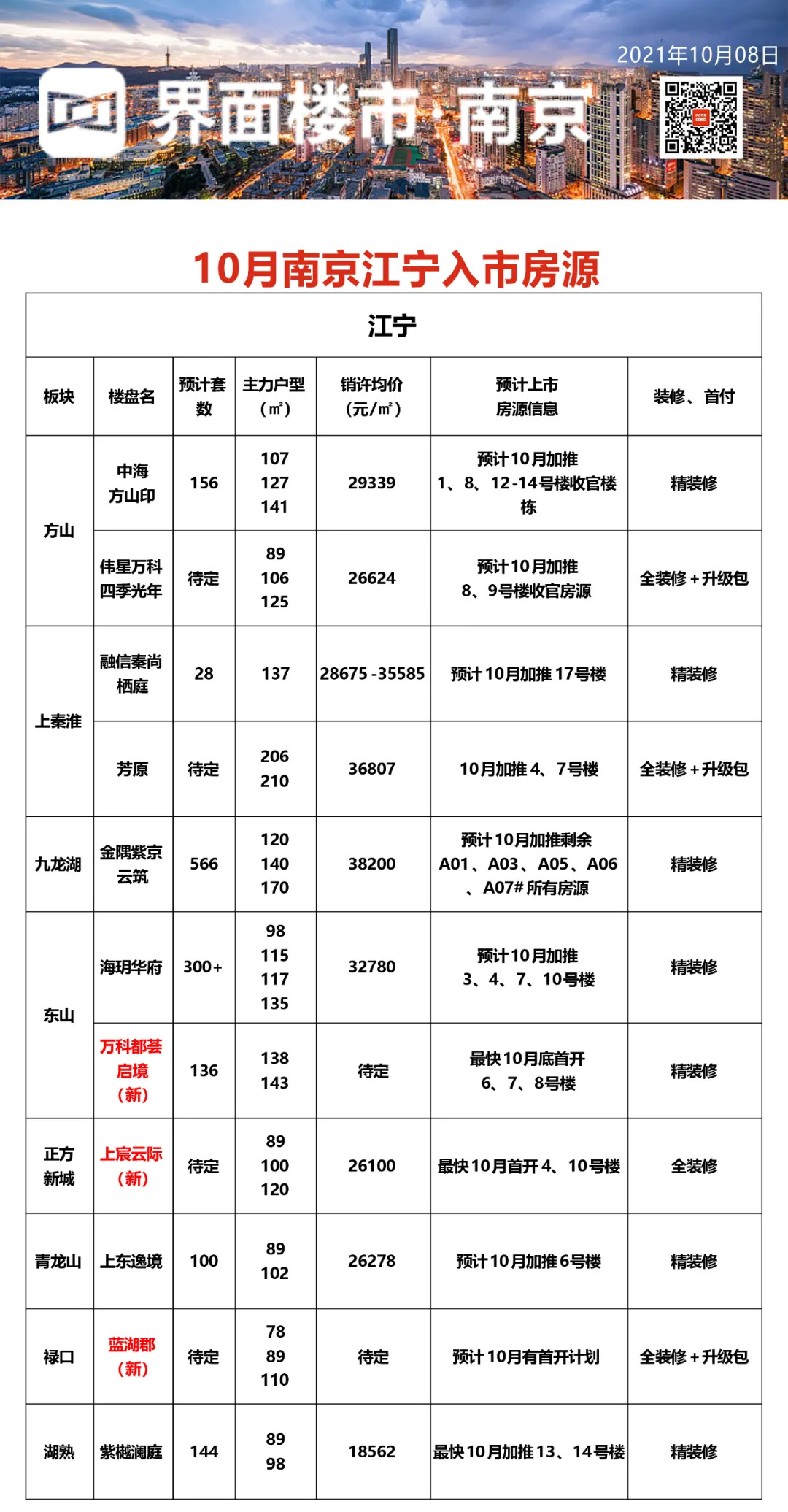 据本站不完全统计,在10月份,南京全市预计将有42盘超7000套的住宅供应,其中,有多个全新楼盘入市,也有热盘收官!值得一提的是城中板块目前暂无入市房源。