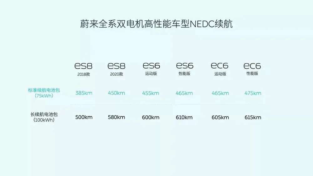搭载三元铁锂电池后,蔚来全系车型续航均有提升