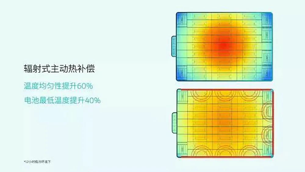 除此之外,蔚来还在电池包外部署了多种隔温材料,并且采用了辐射式主动热补偿的防范,在冬季可以将电池的温度均匀性提升60%,电池的最低温度可以提升40%,因而在冬季续航方面,蔚来的三元铁锂电池表现也能够更加优秀。