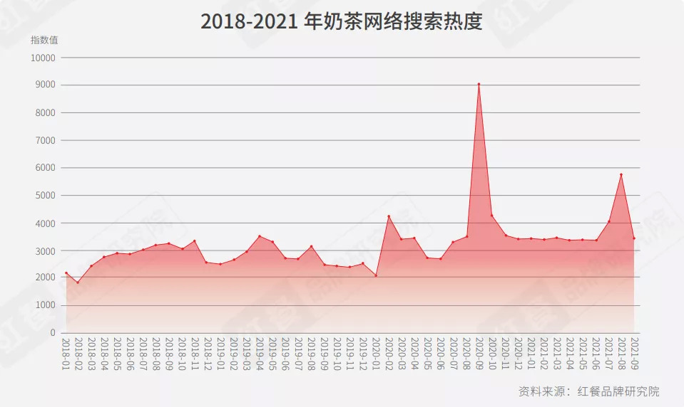 同时,再选取奶茶的百度指数作为参照,与其相比发现,柠檬茶的搜索热度也呈现出了明显的季节性。从走势来看,奶茶的百度搜索指数走势比较平稳,虽偶有峰值出现,但持续时间短暂。