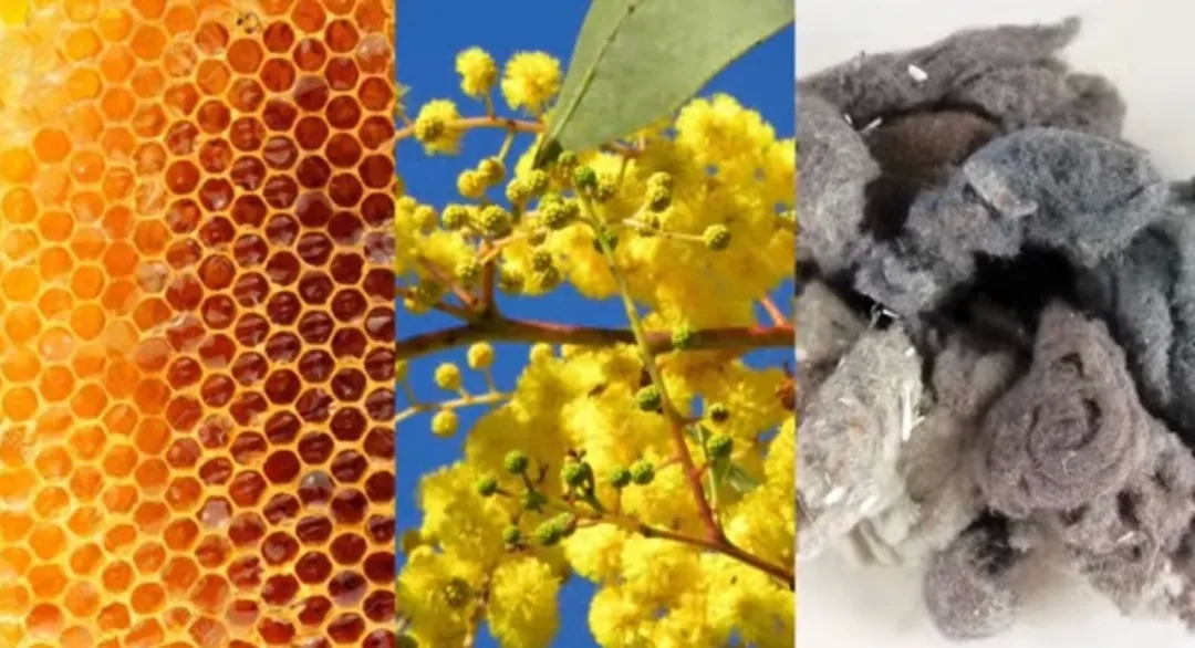图为蜂蜜、阿拉伯树胶、植物纤维