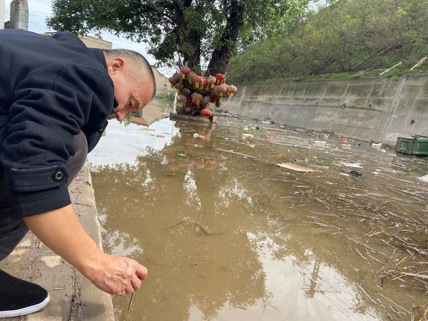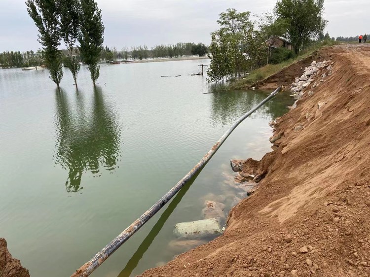 【现场】汾河决口被封堵,山西新绛洪水仍未全部退去