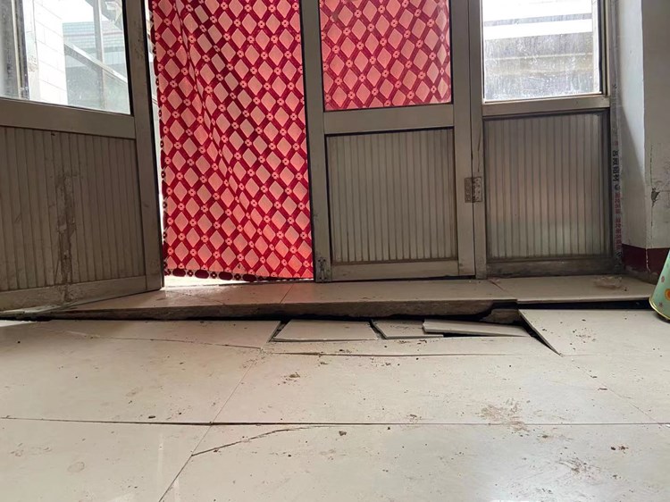 桥东村村民侯三红家受洪水浸泡后地面下陷。
