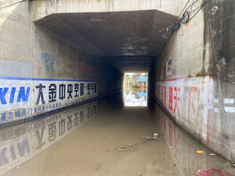 涵洞外即为新绛县成被淹的部分老城区域在。