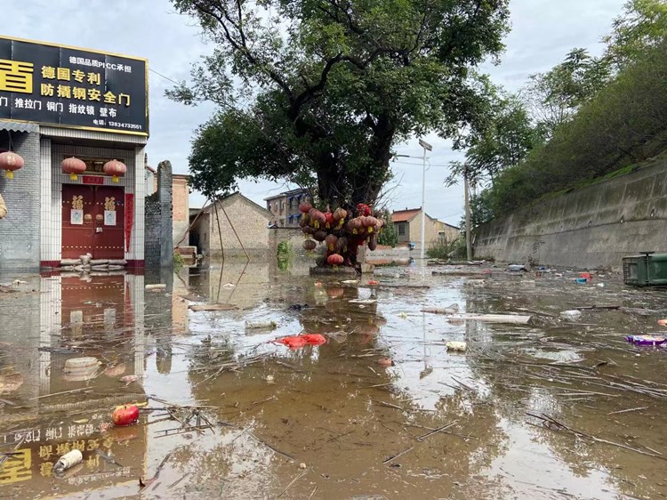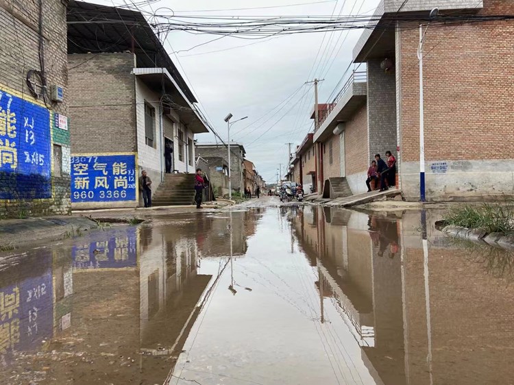 桥东村村内汾河水倒灌后的场景。