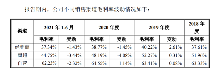 不同销售渠道毛利率情况(数据来源:企业招股书)