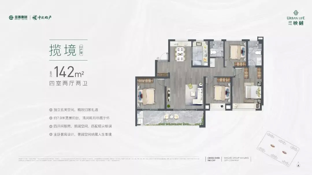 10月4日,新城江北核心区G11地块案名定为“越江时代”,规划打造12栋24-27层的高层住宅和一栋办公楼,将由招商、新城、弘阳、新希望四家房企联合打造,招商操盘,弘阳物业管理服务,自带3800方集中商业体,未来产品精装修交付,户型建面约110-143㎡,新房毛坯限价31850元/㎡。预计今年上市。