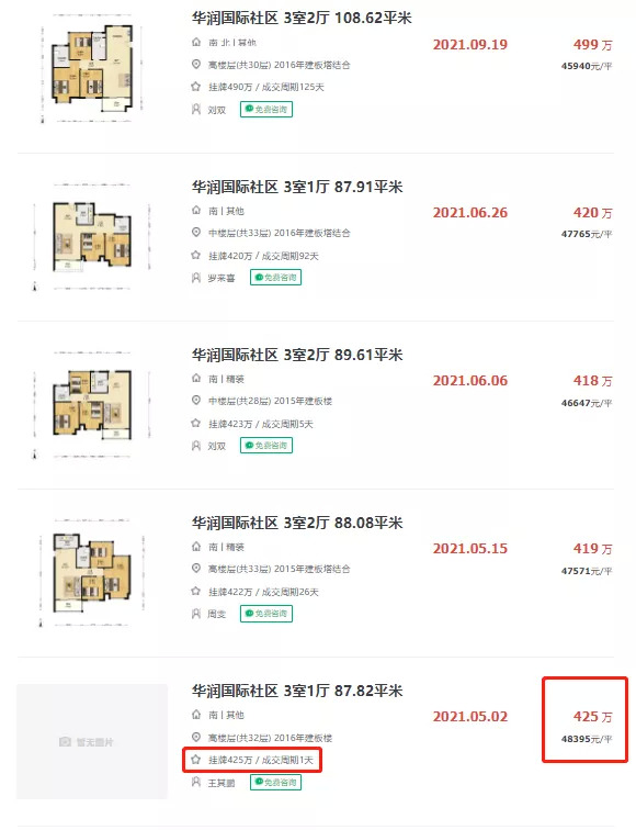 从近几次的成交来看,成交均价基本都在45000万/㎡之上,最高为48395元/㎡,而成交周期仅为1天!