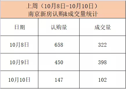 本站根据南京网上房地产已更新数据统计,上周(10月4日-10月10日,其中1-4日暂未数据),新房认购1255套,成交822套,对比上上周(9月27日-10月3日,其中1-3日暂未数据)新房认购3013套,成交908套,认购量下降约58.3%。成交量下涨约9.4%。
