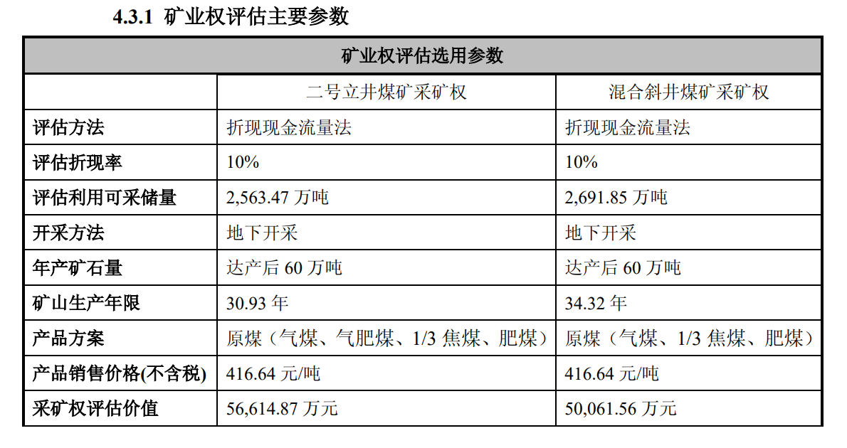 根据2012年当时的披露数据,这两矿业权各自对应的评估利用可采储量分别为2563.47万吨和2691.85万吨。但在出售公告中,却并未明确目前的储量情况。