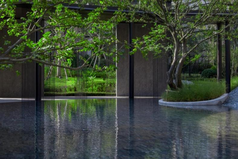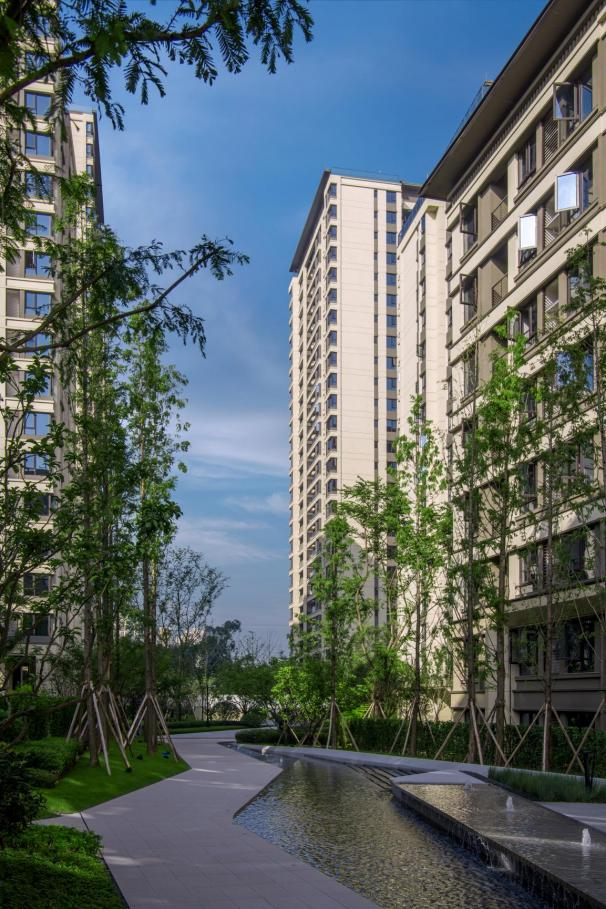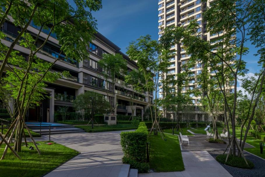在庭院的打造上,御雅巧妙地规划了三轴、三院、一公园,用四季不同的花木,打造了一个绿意盎然的都市绿谷生活。