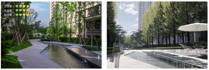 而仔细对比融创团队的设计效果图就会发现,这里基本上完美呈现了效果图中所展现的情景,并且更加具有质感。