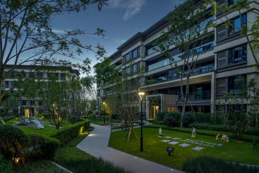三院则如珍珠般溅落于洋房之间。逐光林影以桂花为主,云雾林荫遍布日本晚樱,林间物语则以海棠作为主角,每一个庭院在四季展现出不同的风情。