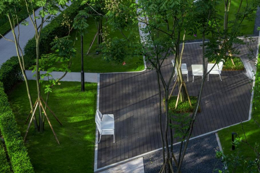 温暖的木质平台镶嵌其中,游戏、办公、阅读、闲聊、发呆……融创给这些宅间庭院赋予了更加多样的功能,真正成为居住者生活的一部分。