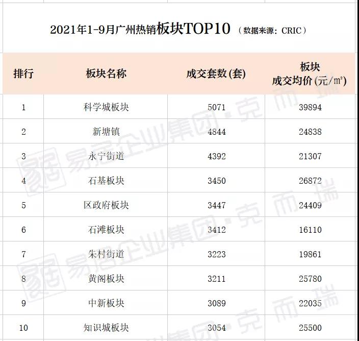 据克而瑞统计,1-9月热销板块TOP10中,靠前的板块为科学城板块、增城新塘及永宁街道、番禺石基板块、花都区政府板块等。从统计到的板块成交均价看,不同板块对应的价格也处于较为合理的区间。对于有一定资金的客户而言,目前或是入市时机。