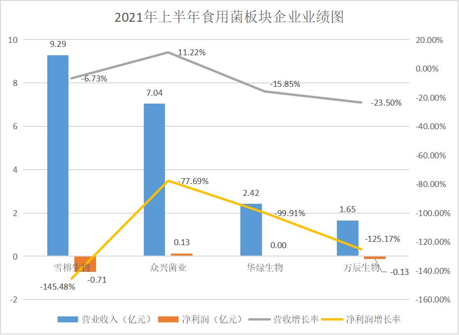 雪榕生物是一家以工厂化方式生产食用菌的现代农业企业。2021年上半年,雪榕生物营业收入为9.29亿元,同比下滑6.73%;净亏损为0.71亿元,同比下滑145.48%。