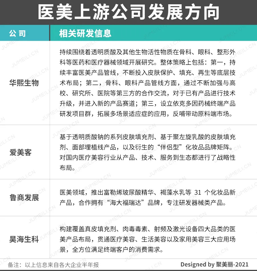 基于生活美容与医学美容的特点,医美上游公司结合2者的特点与优劣,都纷纷开始布局完善的医美+护肤品的服务体系,形成完整的医美消费生态链,打造配套的医美服务。