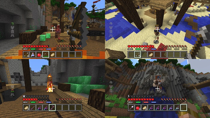 作为为主机玩家特别推出的新模式,战斗模式最多支持8人同场竞技,同时在一台主机上4名玩家可以在沙发上实现四人分屏战斗。战斗匹配通过服务器的匹配系统实现,玩家也可以邀请其他好友加入战斗。跟据玩家的试玩体验,战斗模式的节奏将更快,几乎完全精简掉了《我的世界》的建造元素。