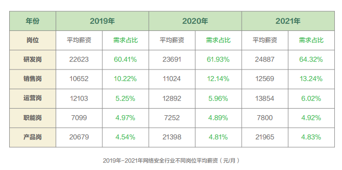 人才竞争态势也体现在薪酬水平的变化上。数据显示,网络安全领域的薪酬近年来稳步增长,2021年上半年,网络安全领域的平均招聘薪酬达到22387元/月,较去年同一时期提高了4.85%。
