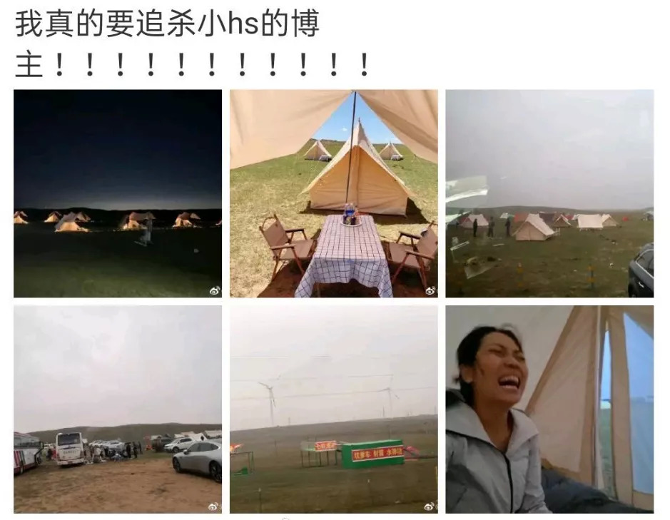 另一位微博网红@野生珍妮,更惨,看了xhs的精致露营后,一路奔波去了内蒙古大草原,到了地方直接崩溃,甚至扬言要追杀小xhs博主。