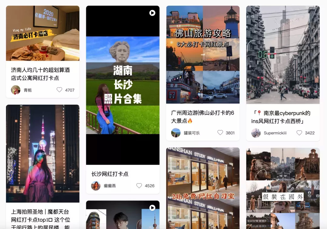 以旅游打卡为例,相比旅行体验,一部分人更在乎的是否能够像小红书笔记里那样“出片儿”,然后复制成类似的笔记再分享到自己的社交账号上去。